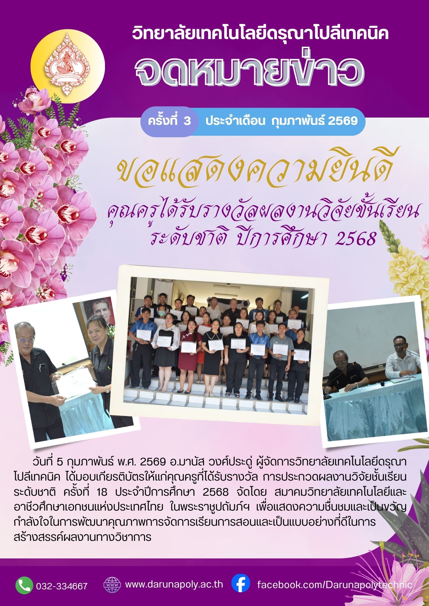 *** ติดตามข่าวสารหรือรูปภาพเพิ่มเติมได้ที่ Facebook วิทยาลัยเทคโนโลยีดรุณาโปลีเทคนิค