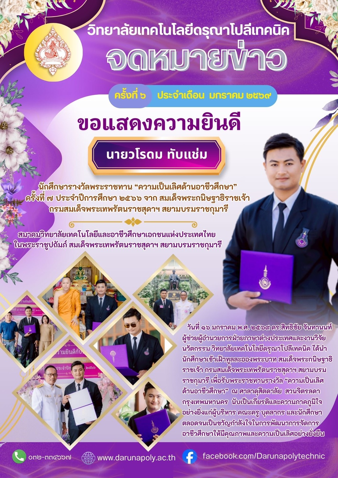 *** ติดตามข่าวสารหรือรูปภาพเพิ่มเติมได้ที่ Facebook วิทยาลัยเทคโนโลยีดรุณาโปลีเทคนิค